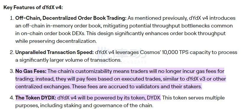 例如,最新的 dYdX v4 是在 Cosmos-SDK 驱动的链上实现的;它承诺交易者将不再支付交易的 gas 费;但费用将根据交易规模收取,模仿了中心化交易平台上的交易体验。