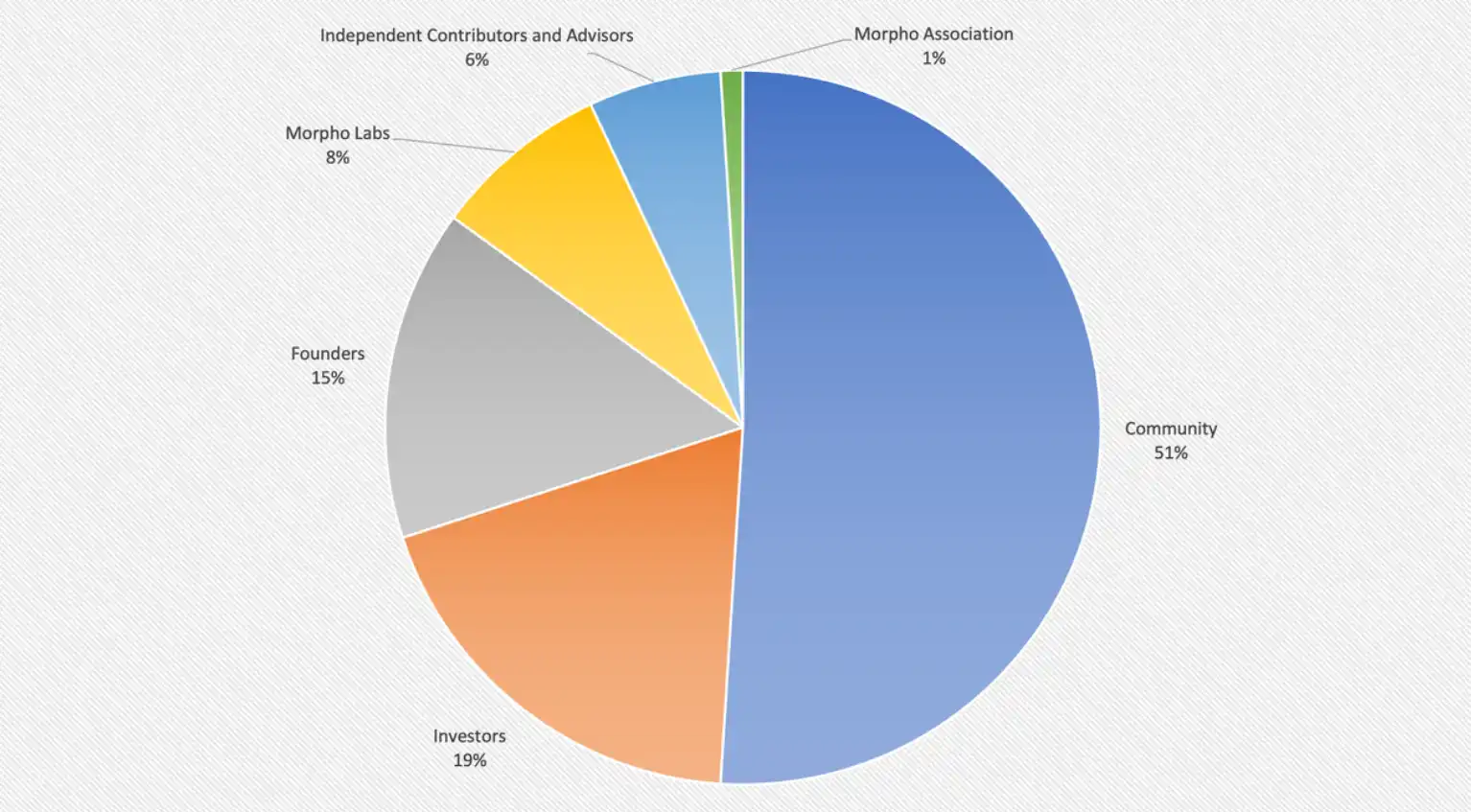 Morpho 代币总量为 10 亿枚,其中 51% 归于社区,19% 出售给投资者,创始人和背后的开发公司 Morpho Labs 和运营机构 Morpho Association 拥有 24%,剩余给到顾问和贡献者。