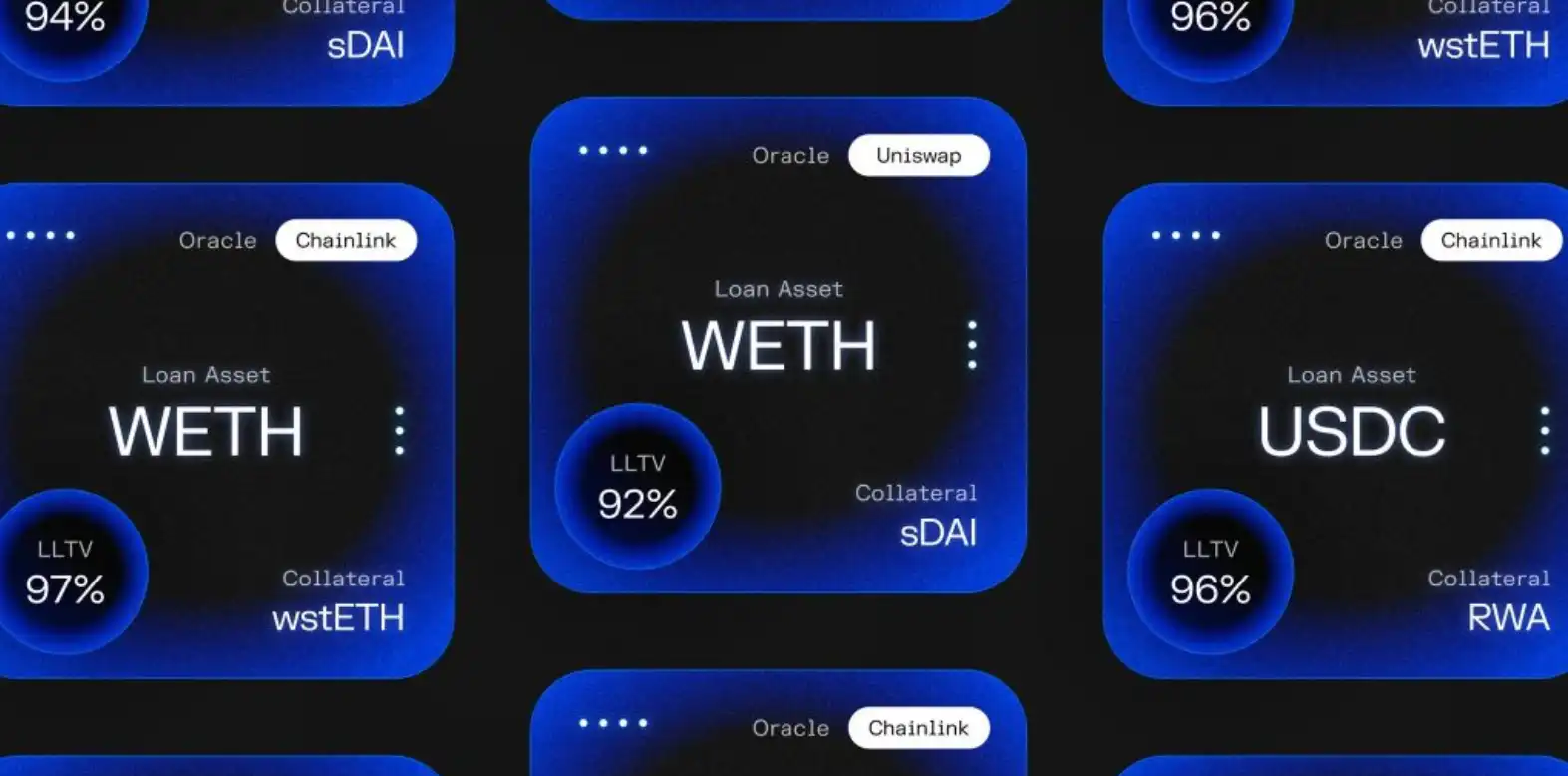 Morpho Blue 采用了类 Uni V4 的产品思路,即自己只做一类大金融服务的基础层,把基础层之上的模块都开放出去,允许不同的人进来提供服务。