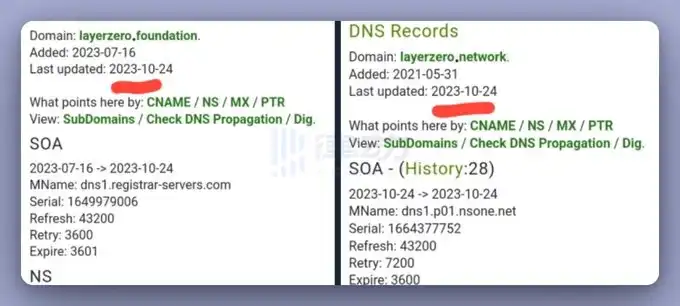「layerzero.foundation」域名和「layerzero.network」域名曾在今年 10 月同步更新