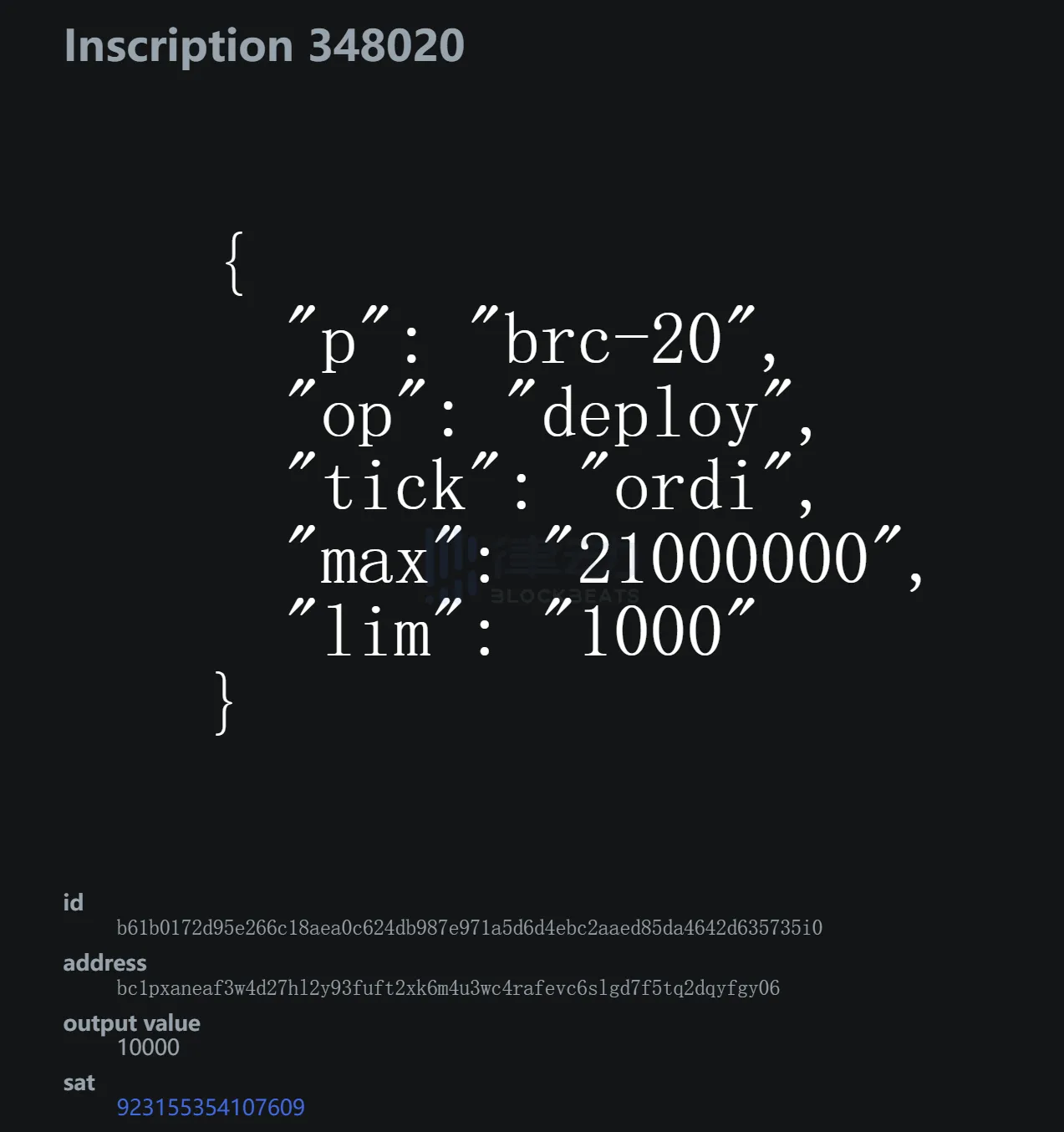 使用 Ordinals 协议刻录下图所示文本来部署 BRC-20 Token: