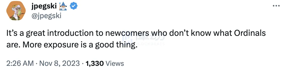 但社区里对这件事也有不同的看法。有人认为这次乌龙事件对于不知道什么是 Ordinals 的新手来说是一个很好的介绍。「更多的曝光是一件好事。」