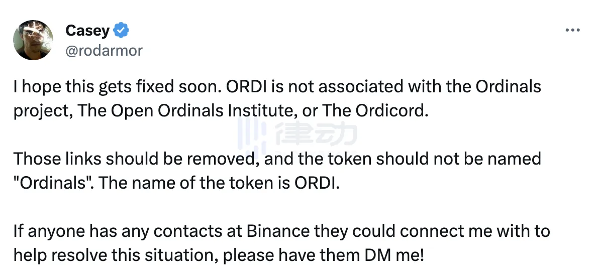 Ordinals 创始人要求 Binance 移除 ORDI 相关介绍信息