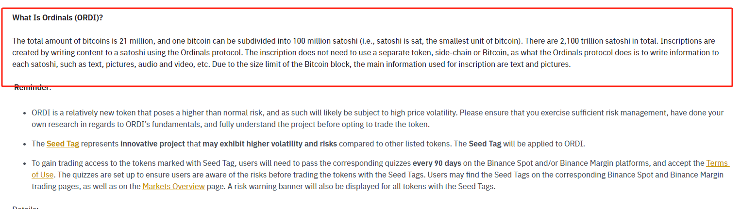 尽管后来 Binance 将这段表述删除并替换成了「ORDI 是比特币区块链上第一个根据 BRC-20 可替代代币标准创建的代币」,但 Ordinals Hub 员工@cbspears指出 Binance 上 ORDI 代币的「信息」页面关联的链接和 ORDI 并无关系,并称「这是极其误导性的」。