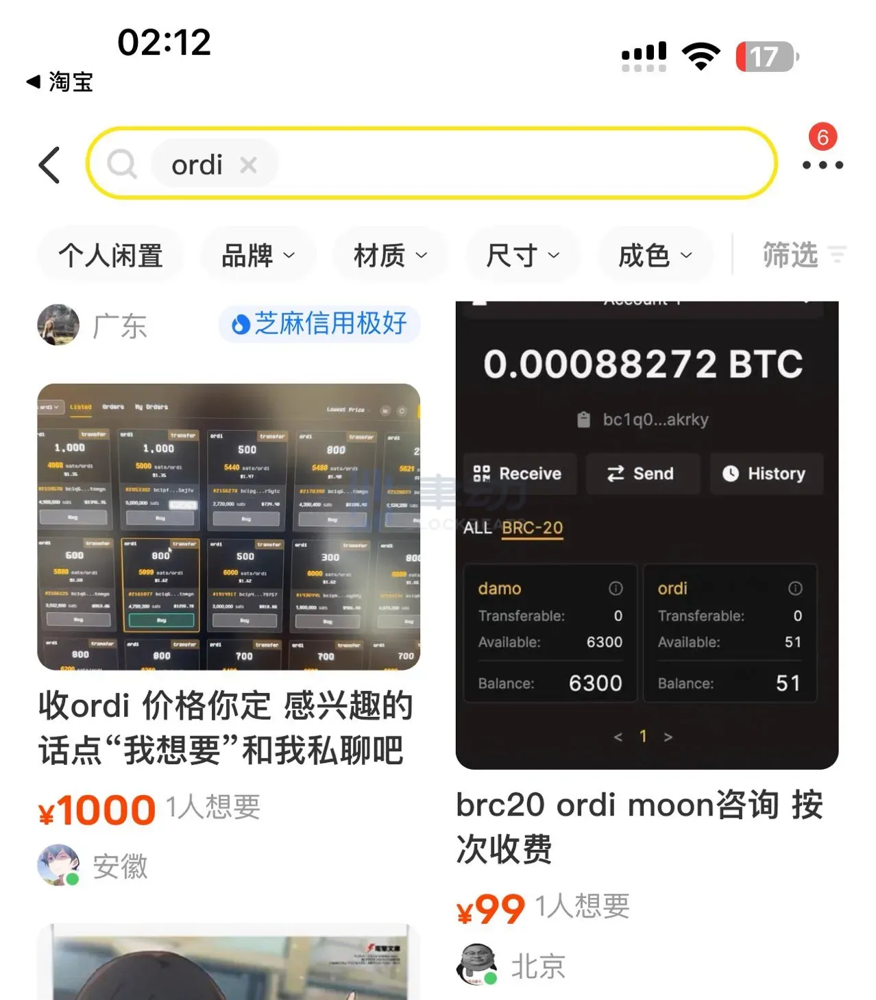 事实上,ORDI 与 Ordinals 项目无关,是名副其实的社区 meme 币,甚至咸鱼上都出现了 ORDI 的身影。