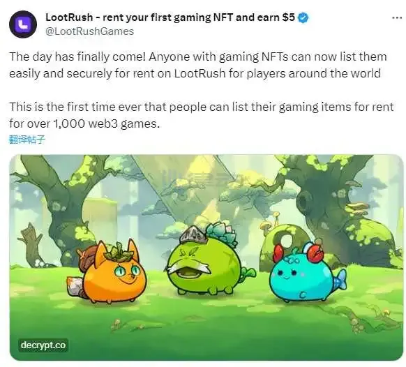 链游平台 LootRush 推出 NFT 租赁市场,曾获 Paradigm 领投 1200 万美元