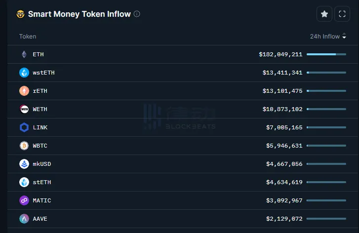1.LINK、MATIC、AAVE 位居 Smart Money 24 小时流入榜单前列;