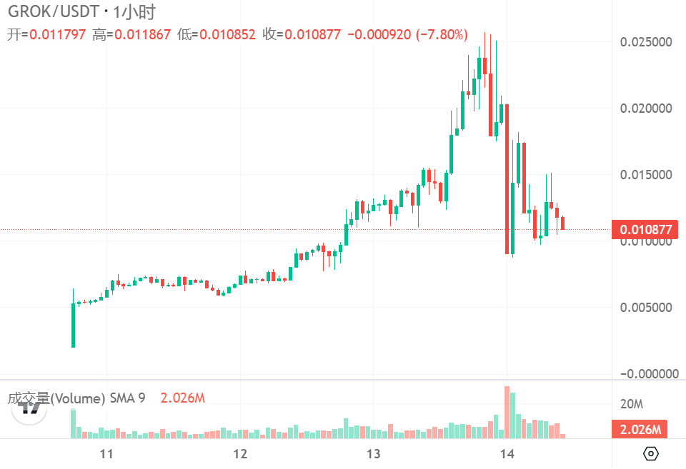 24小时涨幅超80%后,meme币GROK因涉骗局消息遭腰斩