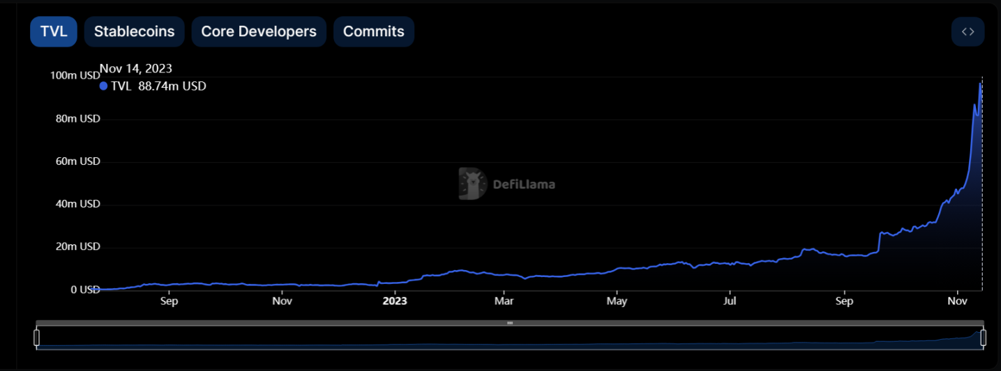 DeFillama 数据显示,Kujira 生态的 TVL 自 9 月以来增长逾五倍,两个多月即从 1600 万美元附近狂飙至 8800 万美元左右,速度堪称惊人,而其代币 KUJI 也在三个月内涨幅近 400%,俨然有黑马之姿。