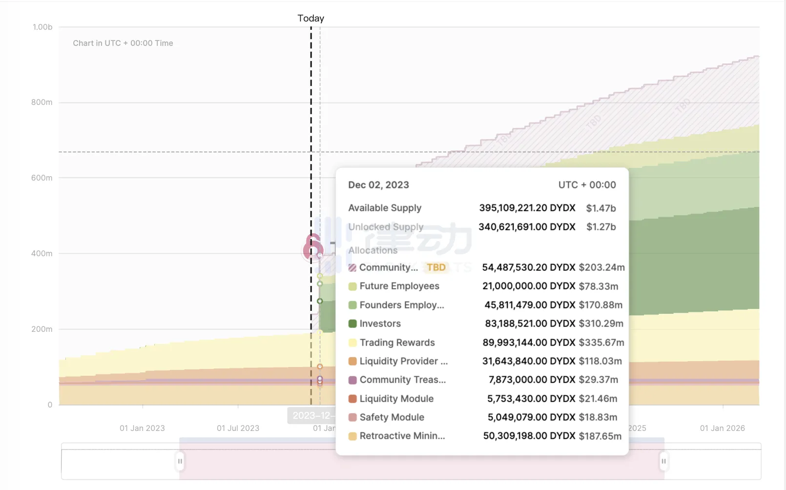 12 月初,DYDX 还将迎来一次大额解锁,其中大部分将分配给早期投资人及团队。