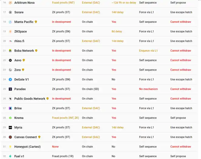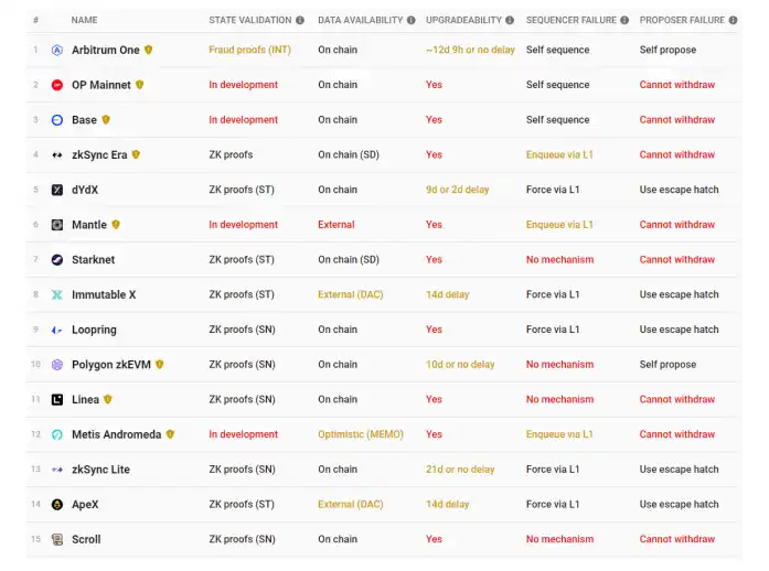 目前 L2 中排序器都是中心化的,但去中心化排序器在未来也尤为重要,从意识形态的角度来看,在存在信任假设的前提下,单一的中心化排序器并不可取。不过排序器并非必不可缺,它只是 Rullup 在设计上的选择,因目前暂未有全新方案替且如今 Rollup 均采用中心化的排序方式来解决交易排序问题,当下 Rollup 的实际进展由下图 L2BEAT 官方数据所示。