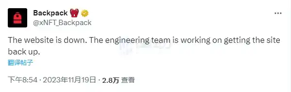11 月 19 日,加密交易平台 Backpack Exchange 发文表示,网站目前无法访问。工程团队正在努力恢复站点正常运行。 截止发文时,经 查证,该网站已恢复正常。