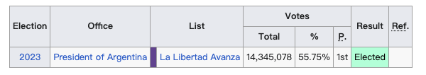 无论如何,在一个年通货膨胀率超过 140%、五分之二的人生活在贫困中的国家,Javier Milei 的胜利证明阿根廷人已经厌倦了传统的政治和经济灾难,阿根廷人民愿意尝试新事物,选择了一条新的道路。