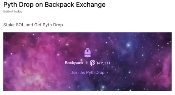 在 Backpack Exchange 注册账户并完成 KYC 认证流程,同时购买或存入至少 5 枚 SOL 代币,并将其质押至少 24 小时。质押已于 2023 年 11 月 18 日 23:00 开始,且在 11 月 19 日 19:59 之前结束。满足条件的用户,包括持有 Mad Lad 的用户和在 Backpack Exchange 进行交易活动的用户,将根据其交易量获得 PYTH 代币,直至达到最大分配额度。所有其他满足资格的经过验证用户也有机会获得 PYTH 代币分配,分配将在 UTC 时间 11 月 20 日 22:00 之前进行。