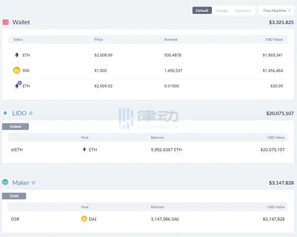 据 Etherscan 信息,新 Layer 2 网络 Blast 合约地址当前持有资产总价值达 2654.87 万美元。其中价值 2007.5 万美元 ETH 存入 Lido 协议,314.78 万美元存入 Maker 协议。
