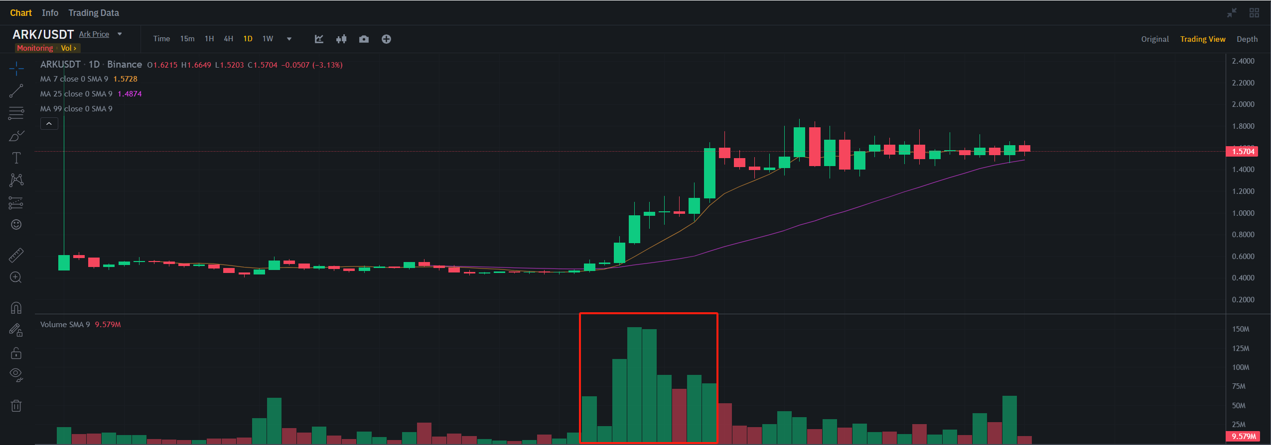目前 ARK 上涨 3 倍后横盘在 1.6U 上下,能否续写 TRB 的神话,我们拭目以待。