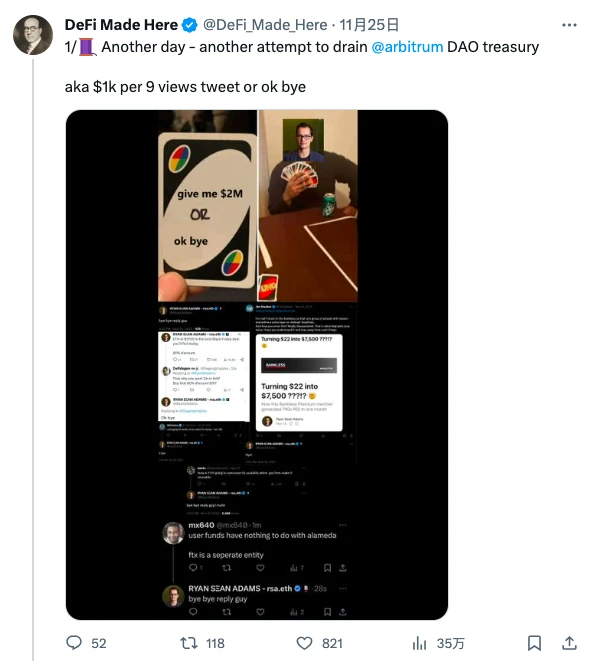 事件的起因为,Bankless DAO 近期于 Arbitrum 治理论坛内发起了一项提案引发了众怒。