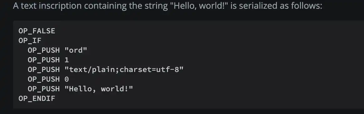 12. 在第一步提交的 commit 中,铭文内容通过数据推送在未执行的条件语句中序列化,形成「信封」。这种方法不改变脚本的语义,可以与任何其他锁定脚本组合使用。