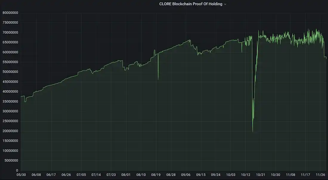 项目提出了持有证明系统(POH)的概念,用于激励持有 CLORE 代币的用户。持币者参与该系统时,CLORE 代币始终存放在自己的钱包中,没有锁定期,存取自由。持有 CLORE 代币越多,出租设备时获得的奖励就越多;租赁使用设备时可以获得高达 50% 的费用折扣。目前大概有 5600 万枚代币参与了 POH,占当前流通量的 25% 左右。