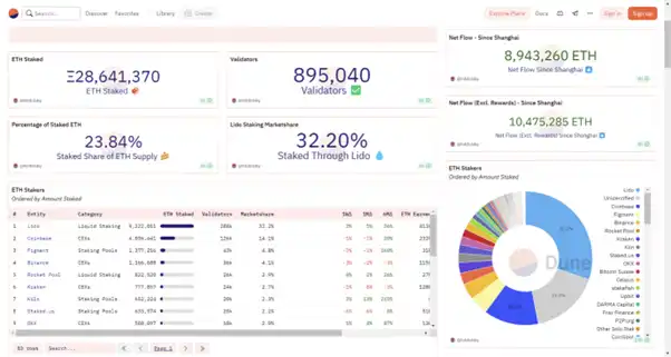 ● 资金中心化: Lido 的代币发行和质押可能受到一些大额持有者的控制,他们有可能在协议上产生不成比例的影响,如下图 Dune 的数据所示,11 月 29 日:以太坊信标链质押总量超 2864 万枚 ETH, Lido 市占率达 32.20%;