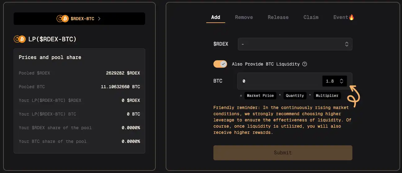 11 月 24 日,Orders Exchange 发起为期 10 日的「首次在比特币网络上进行的流动性挖矿」活动,旨在奖励提供流动性和执行交易的用户,并通过回购和销毁的方式来处理 BID 订单的服务费用。用户参与活动可以获得 $RDEX 代币的奖励。目前,Orders Exchange 的流动性池中持有超 260 万个 RDEX,其价值约为 11 BTC。