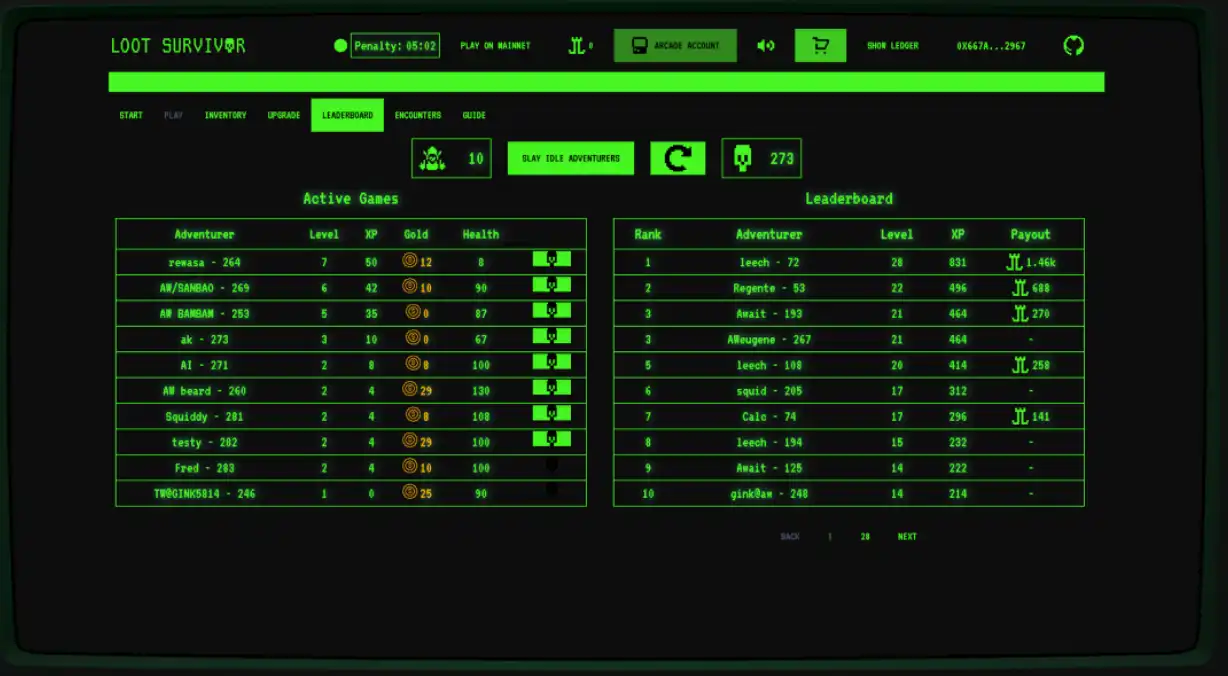 (Source: Fred 在 Loot Survivor 上的游戏截图和表现排名)