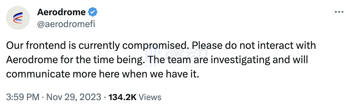 官方表示,velodrome.finance 和 aerodrome.finance 域名遭遇 DNS 攻击,经初步调查,预计与攻击者网站交互的用户最高损失 25 万美元。