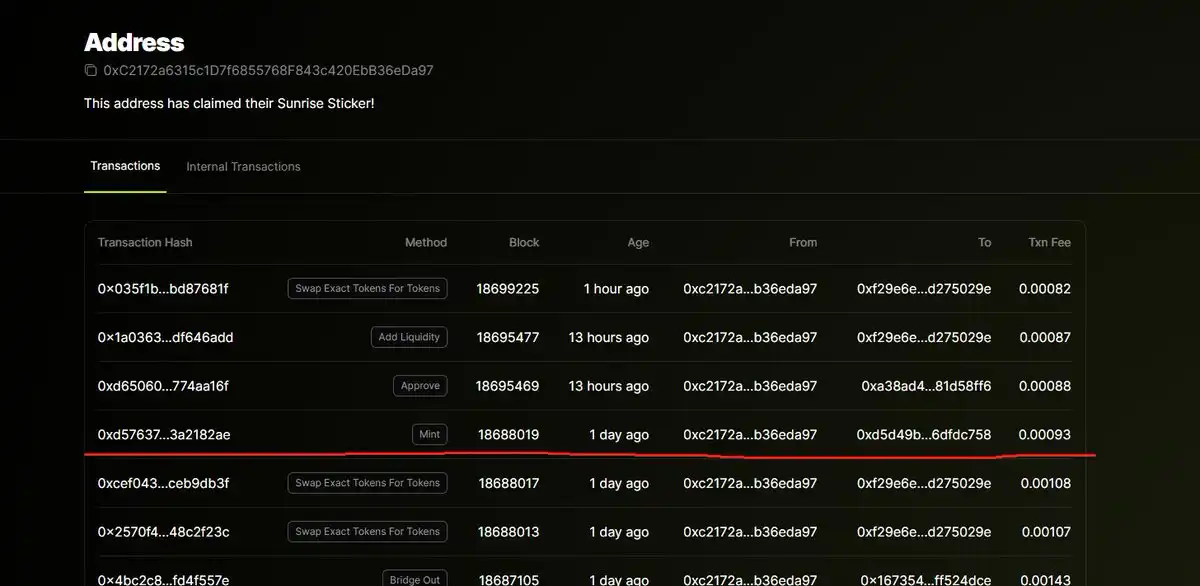 2.以太坊铭文创始人亲自参与 Mint,而且 18684900 也是其当天唯一一次进行的铸币操作;