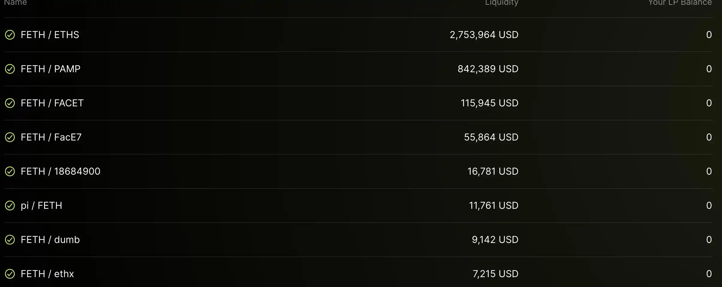 而你也很容易想到,目前以太坊主网上还有 Uniswap。目前 FacetSwap 虽然只是上了铭文相关的流动性池,但得益于低手续费,添加更多资产吸引用户加入可能也只是时间问题。