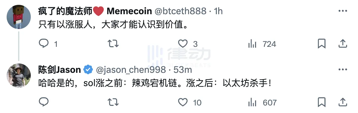 也有用户指出只有「以涨服人」才能让人看清价值,言外之意便是以太坊要想实现价值回归,必须让 ETH 的价格涨得更高。