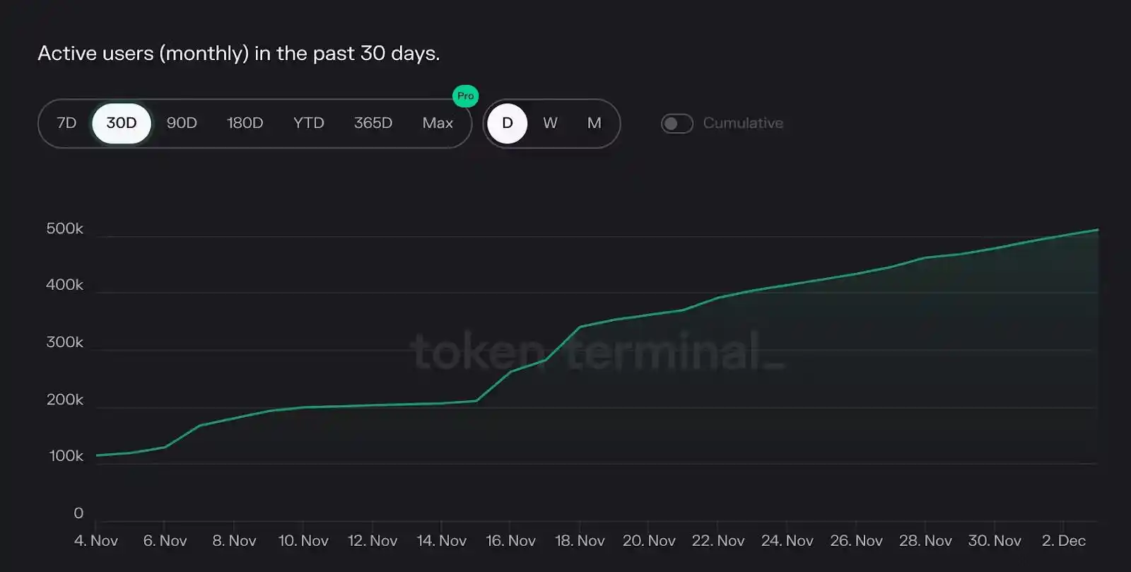 过去 30 天内,月活跃用户超过 500,000,增长了 5 倍。