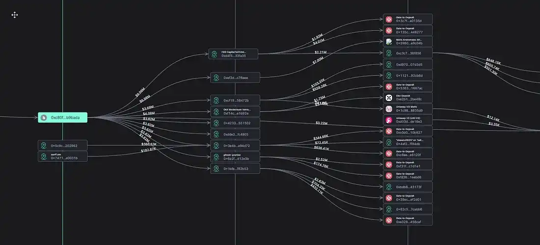持仓地址 2 推测为投资人和团队的钱包,从时间上来看已经全部解锁,但是钱包地址内依然留有 84.5 万枚。我们对它的资金流向进行了追溯,发现大部分的 Metis 已经流向交易所卖出。获得 metis 最多的是 FBG Capital,共获得了 16.66 万枚,在一年前已经出售完毕。第二名钱包所有人未知,全部存入了 metis 主网。第三名是 Okx venture,获得了 7.5 万枚,也在一年前出售完毕。总的来说,因为时间比较久远,早期机构的部分筹码已经已经卖出。团队创始人的 Metis 依然留在该地址内,并没有移动。