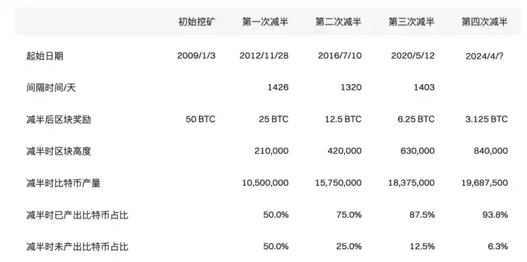 比特币每次减半后都会减少区块奖励,从最初每个区块奖励 50 个 BTC 开始,目前的区块奖励是 6.25 个 BTC,在 2024 年减半事件中会降到 3.125 个 BTC。