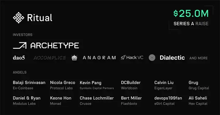 2023 年 11 月 8 日,Ritual 完成由 Archetype 领投 2500 万美元 A 轮融资。