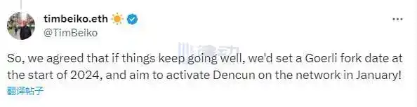 12 月 8 日,以太坊核心开发员 timbeiko.eth 在社交平台发文总结了第 176 次 ACDE 会议。开发人员讨论了 Dencun 的状态、测试网的时间表,以及如何规划接下来的网络升级。根据会议讨论,Devnet #12 于上周启动,几乎所有的客户端都在其上面运行。在包括 Reth 和 Lighthouse 在内的几个客户端中发现并修复了错误。与此同时,开发团队已准备好分叉测试网,计划在未来几周内进行一次大型的 Goerli 影子分叉。开发人员一致同意,如果事情进展顺利,将在 2024 年初设定 Goerli 分叉日期,目标是在 1 月份在网络上激活 Dencun。据悉,2023 年最后一次 ACDE 会议将于北京时间 12 月 21 日 22:00 举行。
