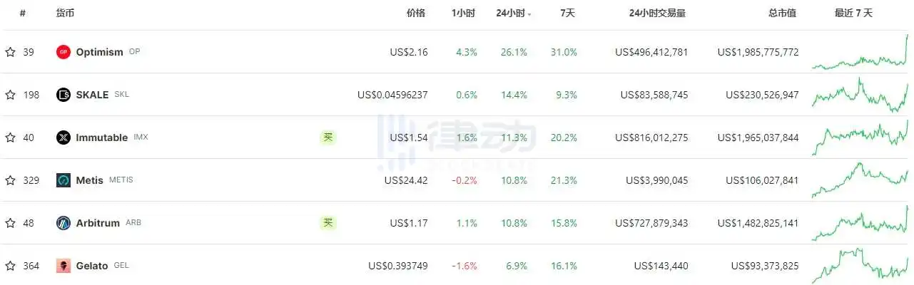Layer 2 版块普涨,OP 24 小时涨超 26% 领涨