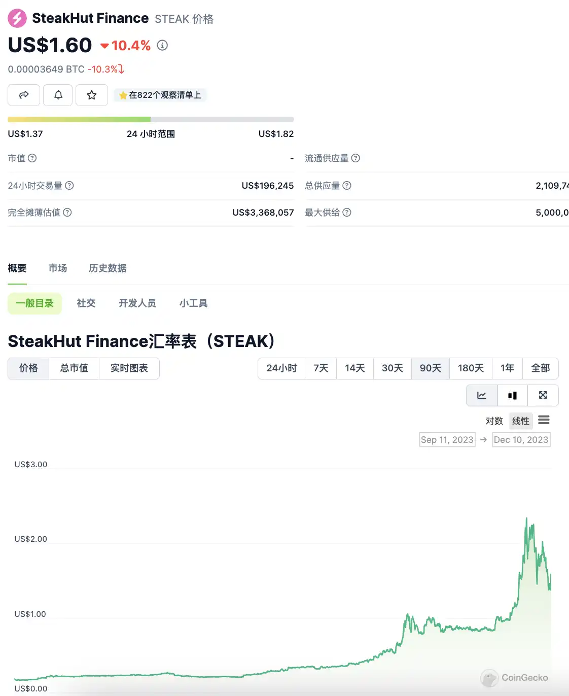 SteakHut 为 LP 提供了自动化流动性管理的解决方案,项目最初主要服务于 TraderJoe,得益于 TraderJoe 近期的涨幅,SteakHut 的代币 $STEAK 也在一个月内达到了 400%~500% 的涨幅。