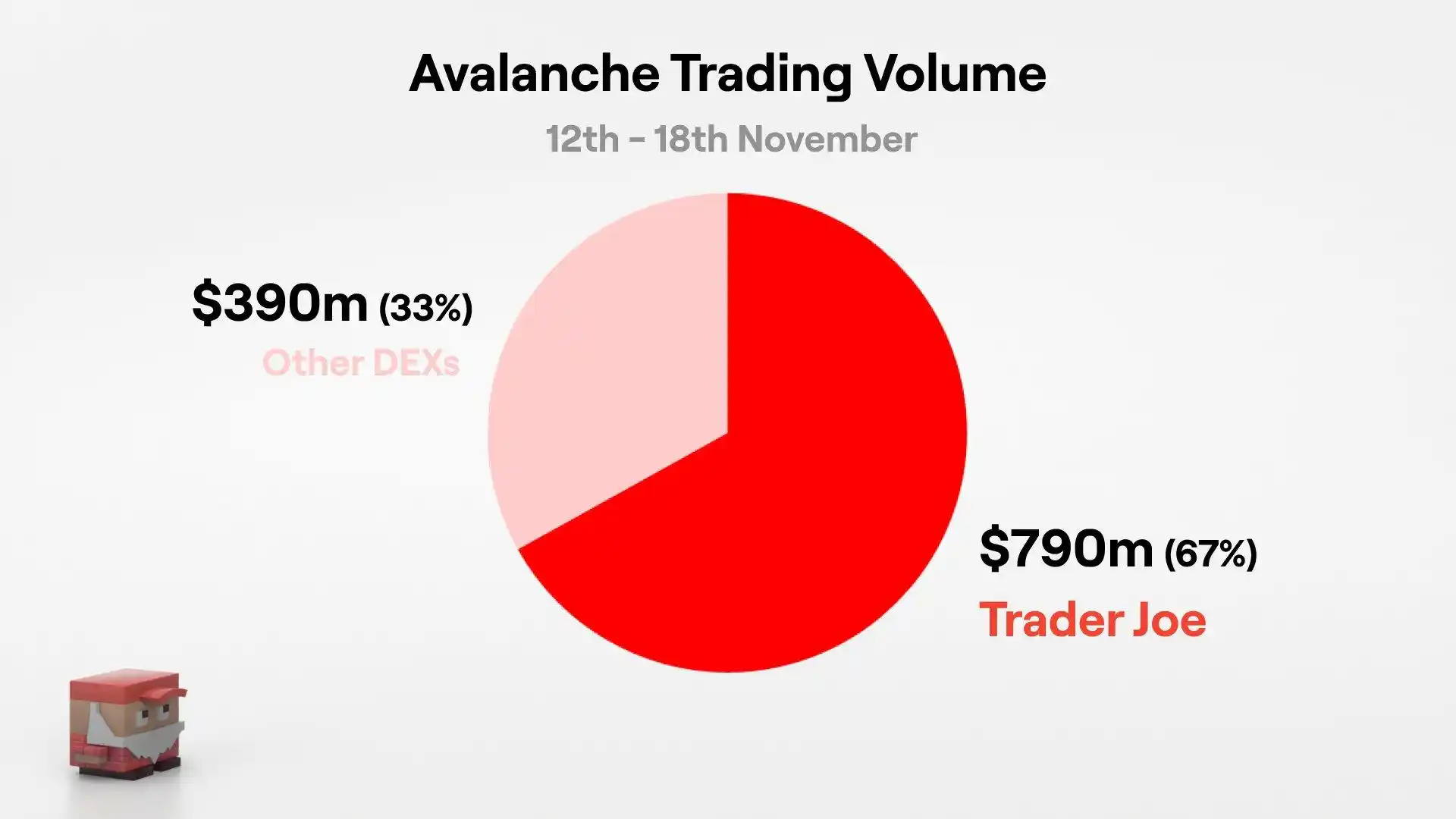 说到 DeFi,大部分 Avalanche 上的交易量都发生在 traderjoe 上,从 11 月 12 日-11 月 18 日的数据来看,traderjoe 在 Avalanche 上的 volume 占比就达到了 67%,成为当之无愧的 Top DEX。