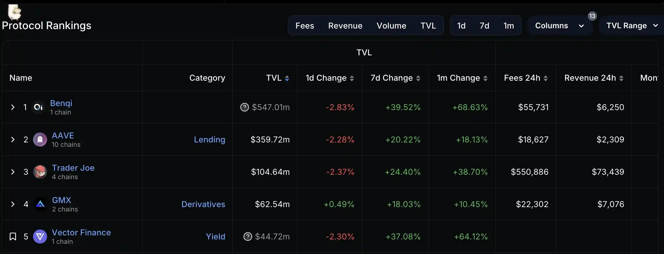 Benqi 是 Avalanche 生态中最重要的协议之一,为 Avalanche 提供借贷与流动性质押服务,也是目前 Avalanche 生态中 TVL 最高的协议。