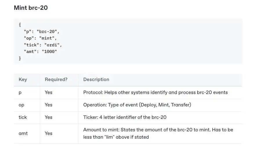 ·第二个叫做 mint 铭文,规定了你去铸造多少代币。