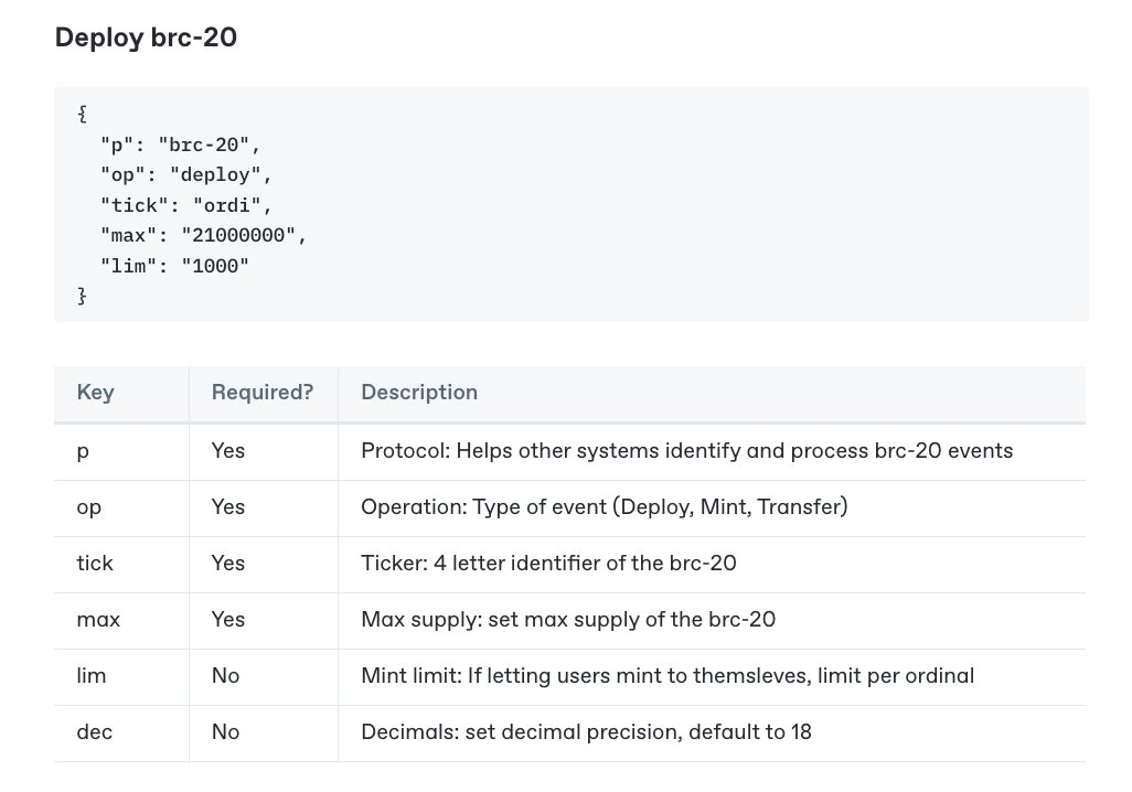 ·第一个叫 deploy 铭文,规定了代币的符号,最大 supply 铸造 limit 等。