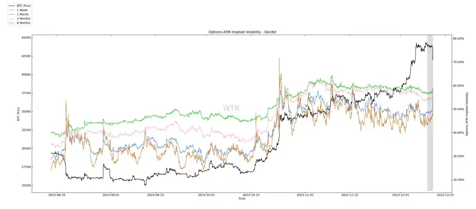 随着⼀次短暂的市场轧多,期权隐含波动率迅速上升。