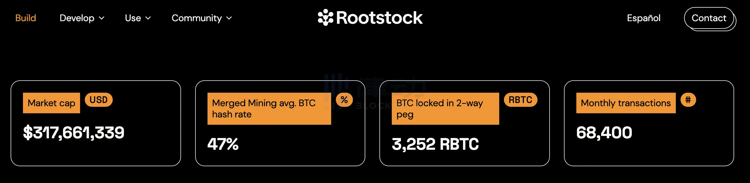 据 Rootstock 官网数据展示,截止发稿时,其生态锁仓 TVL 约为 3.17 亿美元,其中包含 3252 枚 RBTC(按当前 RBTC 市价约为 1.35 亿美元),月交易量在 68,400,算是比特币生态诸多协议中成绩较为突出的协议。