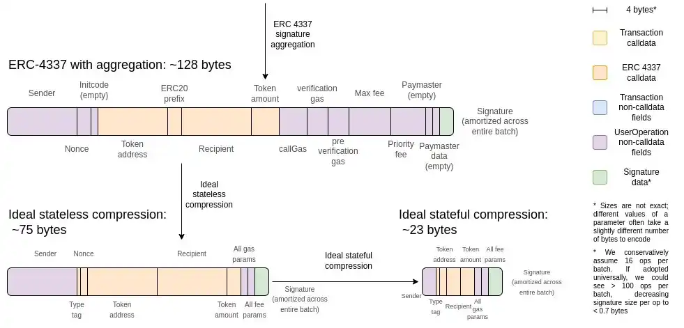 上述设计的一个挑战是它完全是无状态的,这使得它在数据利用上效率较低。通过支持有状态的压缩,使用理想的数据压缩,ERC20 发送可以比仅使用无状态压缩时更节省空间,最多可以节省 3 倍的空间。
