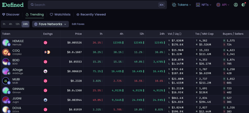 首先,行情网址如 dexscreener、defined、dextool、ave.ai 等有不断更新的交易热榜,交易量大和涨幅大的项目排名靠前,有交易量才有未来。