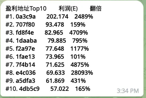 最后,跟随聪明钱地址。越多聪明钱地址买入的土狗,可靠性就越高。有很多专业冲土狗的聪明钱地址,他们能每月稳定盈利 10-30 万美元,平均盈利比例在 30-50%。注意要去除项目方自己的老鼠仓地址、偶然中大奖的地址,多关注能长期买到金狗的地址。