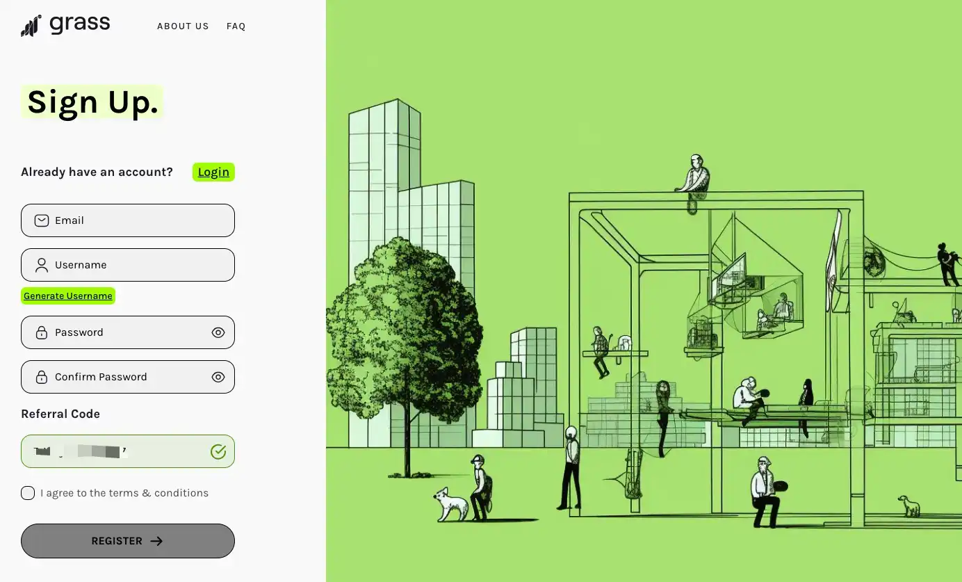 Grass 目前仅开放了电脑端的 Chorme 插件账户,移动端将在之后陆续推出。进入Grass.io,通过邮箱注册账号,然后添加Grass Extension 钱包拓展。