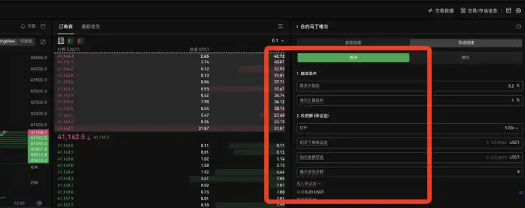 比如,区间过小,很容易导致手里的子弹很快打完,收益变窄。如果区间过大,又很容易导致手里的资金无法有效利用,利润有限。此外,马丁格尔策略属于一种加仓逻辑,遇到单边不回调行情时,则会面临爆仓风险,所以需要手动设置好如止损目标等风控参数。但如果结合行情以及技术指标决定策略入场时机,并透过合约马丁格尔加仓单不断低位吸筹,降低整体持仓成本,就可以尽可能最大化收益。