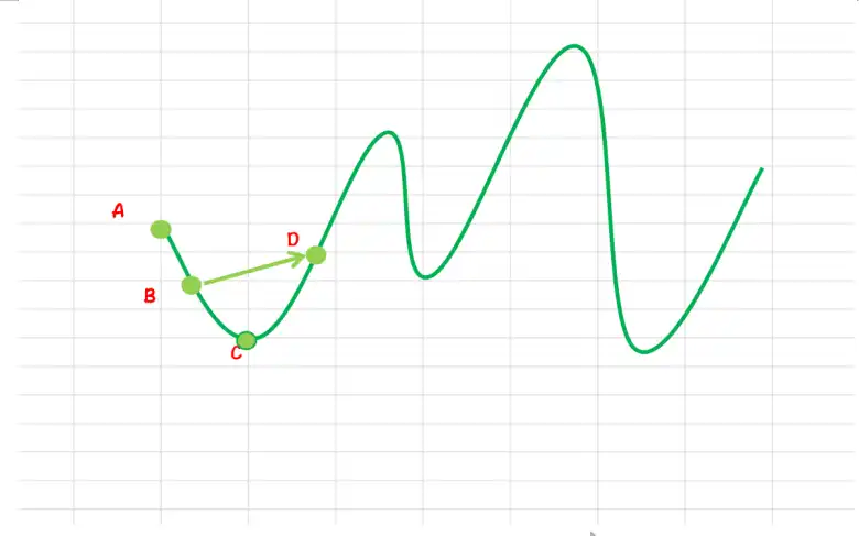 比如,当用户以 A 价格买入某标的,但标的开始逆势下跌,通过 OKX 马丁格尔策略,用户可以分批次加码买入标的,从而使其持仓成本降至为 B,一旦标的反弹至价格 D,那么系统将一次性卖出标并实现收益。尽管 D 小于 A,但是由于较低的成本,所以用户仍能从这个波段中盈利。