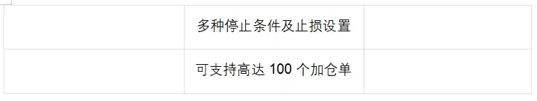 通过以上两个参数,可以设置加仓位置和加仓金额。此外,还可以通过高级设置里面进行开始条件、加仓设置、停止条件、以及止损条件众多参数的设置,进一步完成精细化操作。